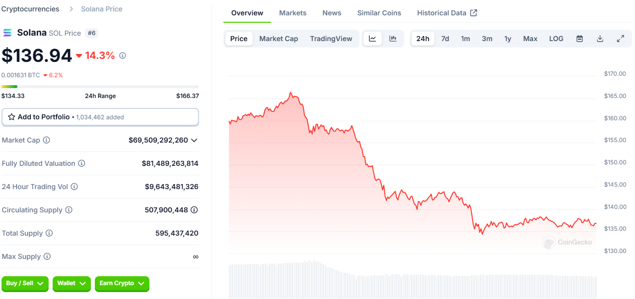Diễn biến giá SOL trong ngày hôm nay (Nguồn: CoinGecko)