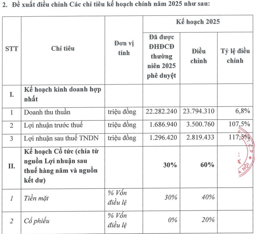 Cụ thể, ban lãnh đạo GEE đề xuất điều chỉnh kế hoạch doanh thu thuần năm nay lên 23.794,3 tỷ đồng, tăng 6,8% so với kế hoạch cũ và tăng 12,6% so với năm trước. Mục tiêu lợi nhuận sau thuế tăng 117,5% so với kế hoạch cũ, dự kiến đạt 2.819,4 tỷ đồng, tương ứng mức tăng 64,4% so với thực hiện năm 2024.