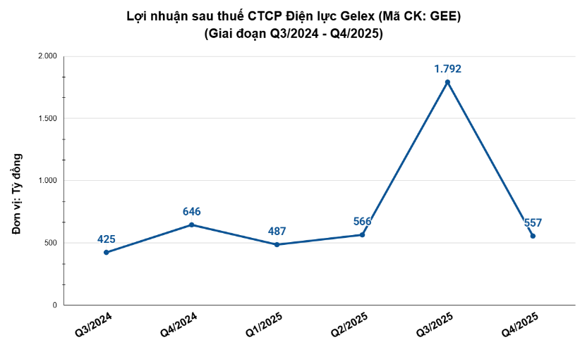 Bên cạnh hoạt động kinh doanh cốt lõi, năm 2025, CTCP Điện lực Gelex (Gelex Electric - Mã CK: GEE) còn ghi nhận khoản lợi nhuận đáng kể đến từ việc bán các khoản đầu tư, đạt gần 1.500 tỷ đồng.