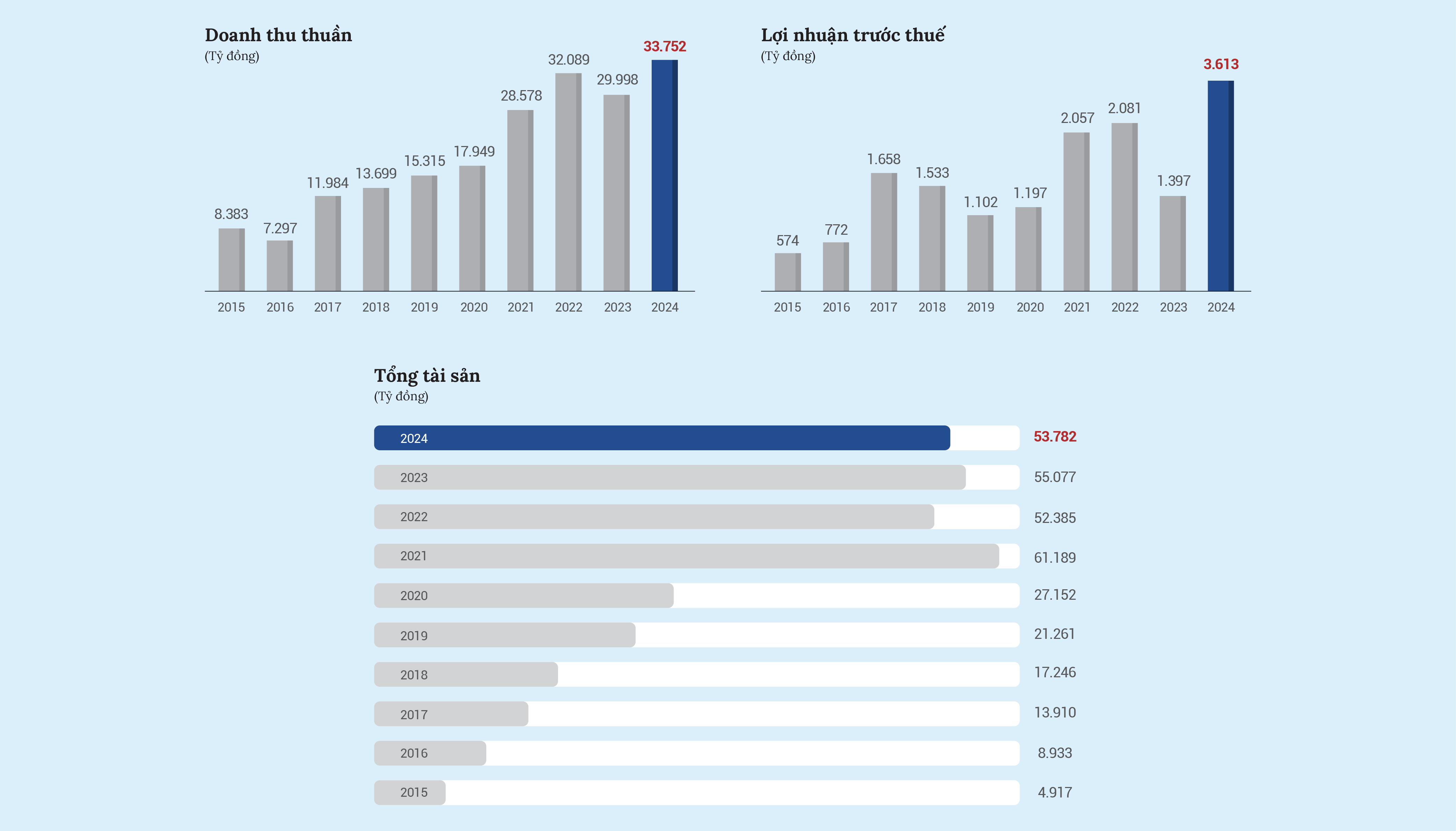 Tốc độ tăng trưởng của GELEX từ năm 2015 - 2024 (thống kê từ Báo cáo Tài chính của doanh nghiệp)