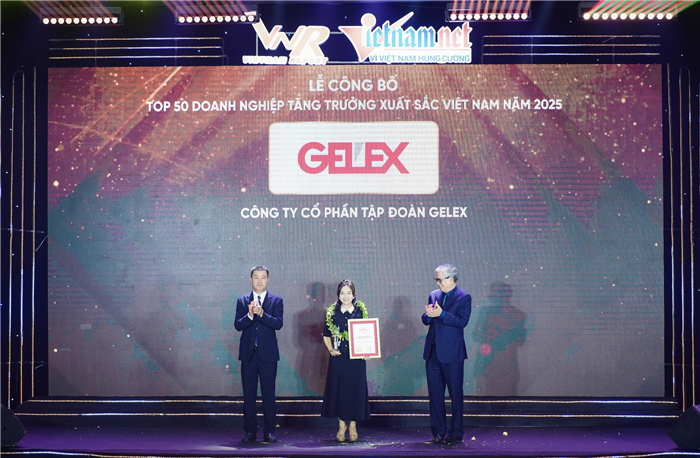Theo Vietnam Report, Gelex (mã CK: GEX) được đánh giá là một trong những doanh nghiệp tiêu biểu duy trì mức tăng trưởng ấn tượng trong giai đoạn 2018-2024 và có nhiều đóng góp cho cộng đồng và xã hội. Công ty được vinh danh là Top 50 doanh nghiệp tăng trưởng xuất sắc Việt Nam năm 2025.