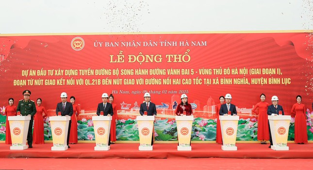 Chiều 9/2, UBND tỉnh Hà Nam tổ chức Lễ khởi công Dự án đầu tư xây dựng tuyến đường bộ song hành đường Vành đai 5 - Vùng Thủ đô Hà Nội (giai đoạn I).