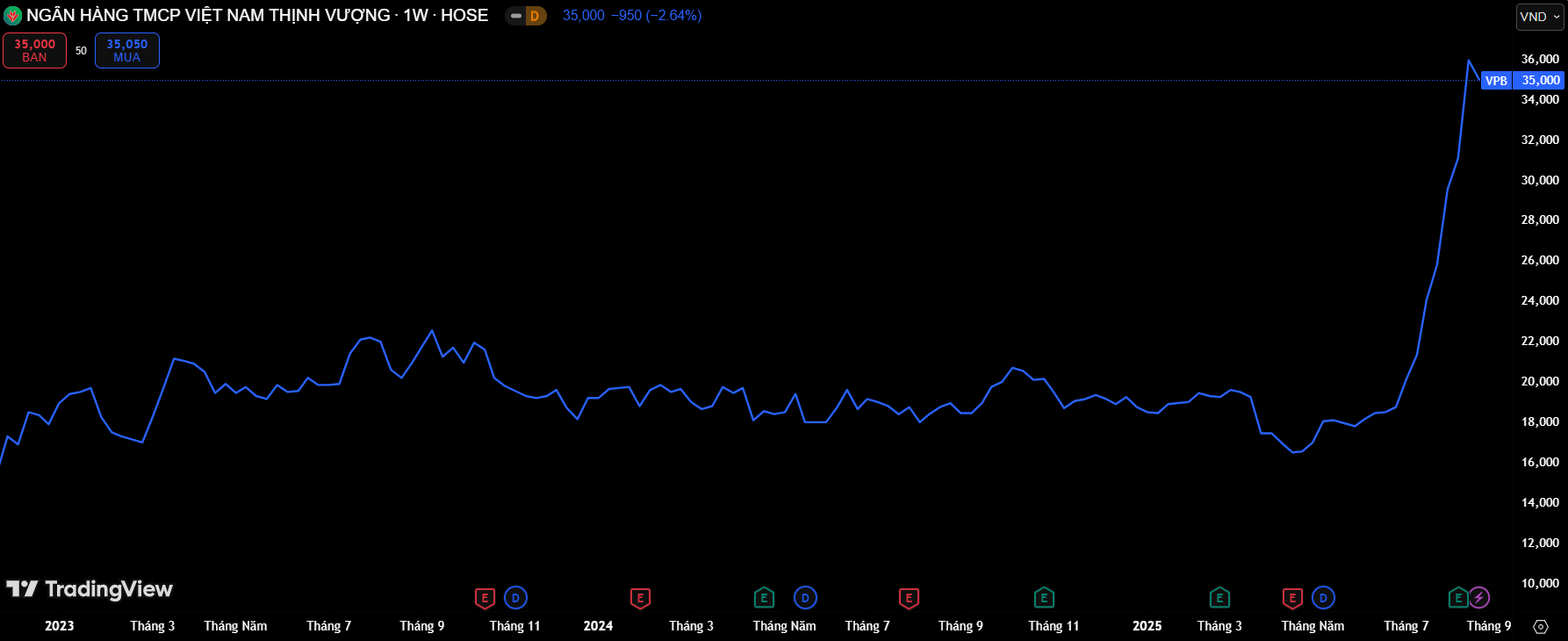 Trên sàn chứng khoán, từ đầu tháng 7/2025 đến nay, cổ phiếu VPB đã tăng gần 90%, là một trong những mã tăng ấn tượng nhất. Vốn hóa thị trường tăng trưởng tương ứng lên gần 290.000 tỷ đồng, trở thành ngân hàng tư nhân lớn nhất thị trường.