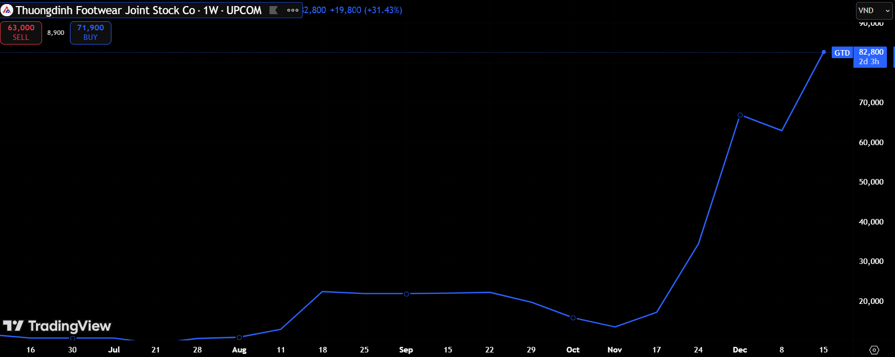 Diễn biến giá cổ phiếu Giầy Thượng Đình (Nguồn: TradingView)