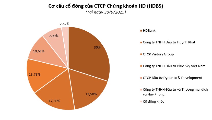 Hiện, HDBS có quy mô vốn điều lệ 1.461,4 tỷ đồng, với 6 cổ đông lớn nắm hơn 97% vốn gồm: Ngân hàng TMCP Phát triển TP. HCM (HDBank – Mã CK: HDB) – sở hữu 30%; Công ty TNHH Đầu tư Huỳnh Phát (17,5%); CTCP Vietory Group (17,5%); Công ty TNHH Đầu tư Blue Sky Việt Nam (13,78%); CTCP Đầu tư Dynamic & Development (10,61%); và Công ty TNHH Đầu tư và Thương mại dịch vụ Huy Phong (7,99%).