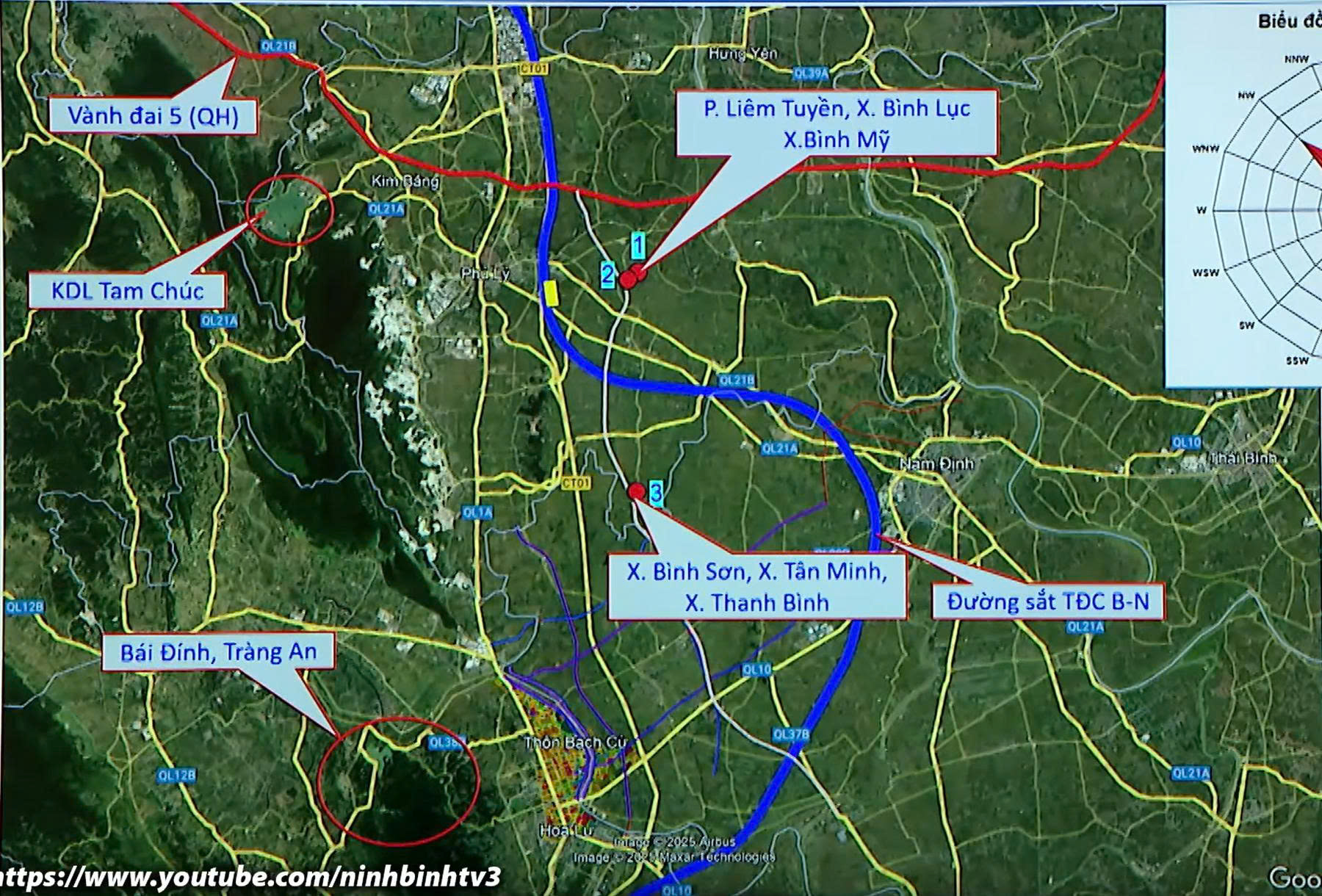 Tổng quan 3 vị trí dự kiến làm sân bay Ninh Bình (Ảnh chụp màn hình: NinhBinhTV)