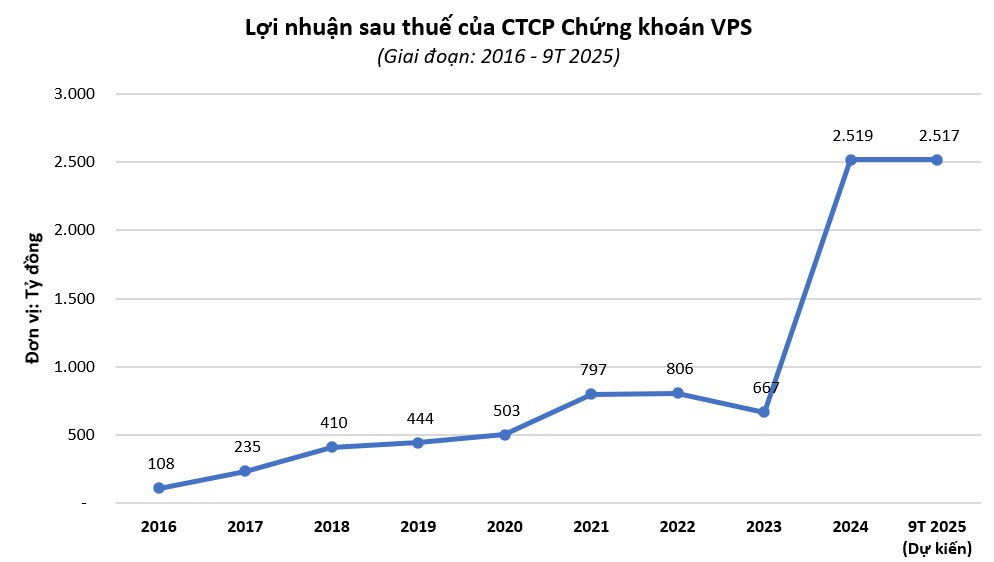 Theo thông tin của người viết, lợi nhuận trước thuế quý 3/2025 của CTCP Chứng khoán VPS (VPS) dự kiến đạt 1.395 tỷ đồng, tăng 70,1% so với quý 3/2024. Lợi nhuận trước thuế lũy kế 9 tháng đầu năm 2025 đạt 3.192 tỷ đồng, vượt 1,2% so với cả năm 2024.