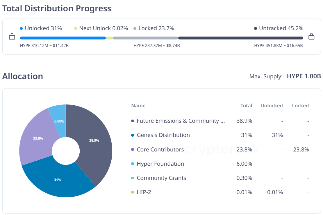 Phân bổ token của dự án Hyperliquid (Nguồn: cryptorank)