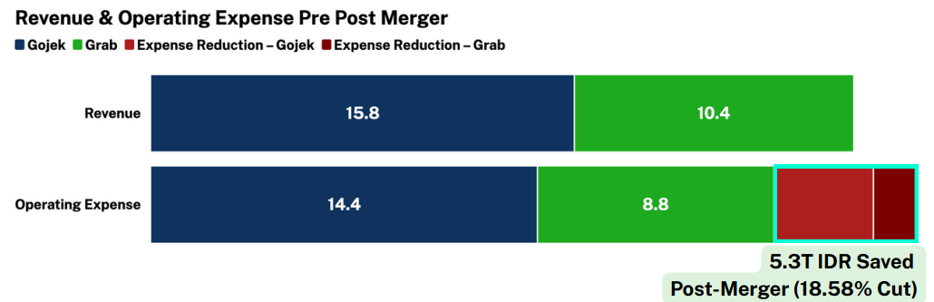 Cụ thể, liên minh giữa Grab và GoTo có thể kiểm soát tới 91% thị phần tại Indonesia, theo Euromonitor International. Còn, chi phí vận hành được cắt giảm tới 18,5% , tương đương khoảng 5,3 nghìn tỷ rupiah (~317 triệu USD) mỗi năm, theo Sentadell.