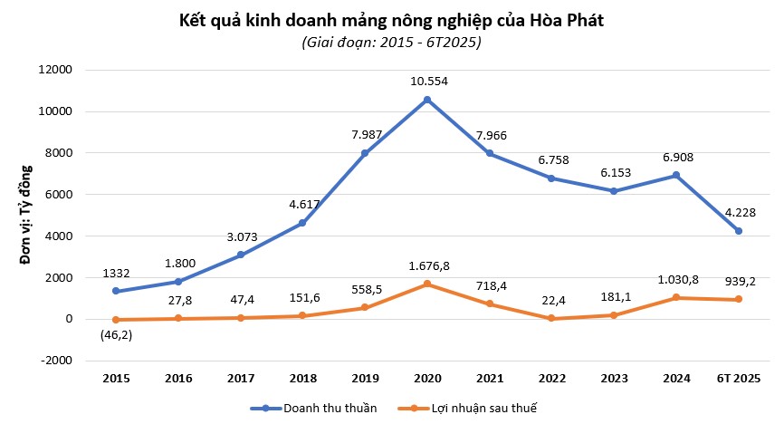Năm 2024, lĩnh vực này mang về gần 7.000 tỷ đồng doanh thu và hơn 1.000 tỷ đồng lợi nhuận sau thuế – tăng gần 6 lần so với năm trước. Trong nửa đầu năm 2025, lợi nhuận từ mảng nông nghiệp đạt gần 940 tỷ đồng, đóng góp hơn 12% vào tổng lợi nhuận hợp nhất của tập đoàn.