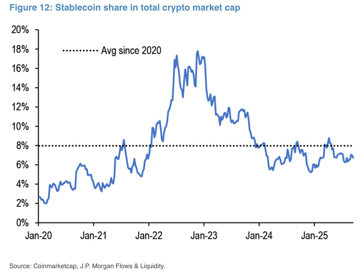 Biến động thị phần stablecoin theo quy mô thị trường tiền mã hóa (Nguồn: JPMorgan)