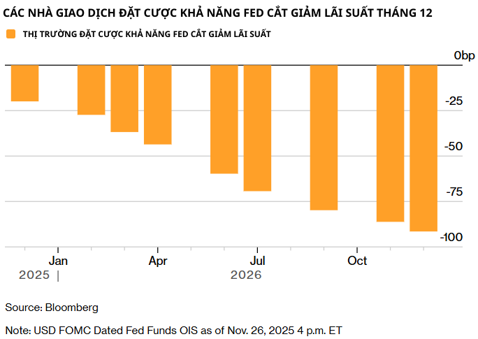 Dữ liệu từ thị trường cho thấy các hợp đồng hoán đổi lãi suất (swap) hiện định giá 80% khả năng Fed giảm 0,25 điểm %, tăng mạnh so với mức dưới 30% trước bình luận của ông John Williams.