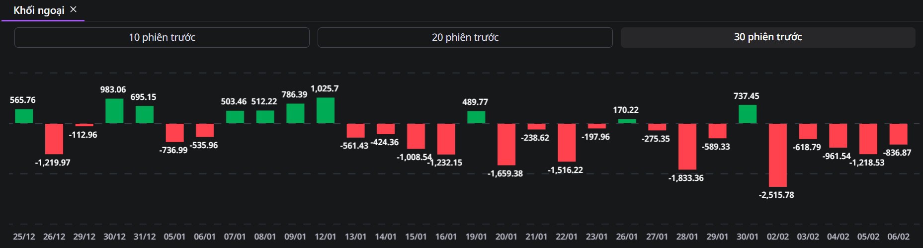 Diễn biến bán ròng quy mô lớn trong tuần đầu tháng 2 diễn ra trong bối cảnh thị trường điều chỉnh mạnh và độ rộng suy yếu, cho thấy xu hướng thận trọng gia tăng ở dòng vốn ngoại tại nhóm cổ phiếu trụ. Nếu trạng thái rút vốn này kéo dài, biến động cung – cầu ở nhóm vốn hóa lớn sẽ tiếp tục là yếu tố ảnh hưởng đáng kể tới nhịp vận động của chỉ số trong ngắn hạn./.
