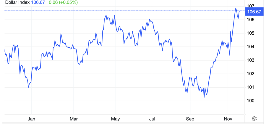 Tỷ giá USD đã liên tục tăng kể từ khi ông Trump tái đắc cử, một phần bởi các chính sách mà ông đề xuất - như áp thuế quan mạnh tay lên hàng hóa nhập khẩu, giảm thuế và siết chặt kiểm soát đối với người lao động nhập cư trái phép - được dự báo sẽ đẩy lạm phát tăng lên.