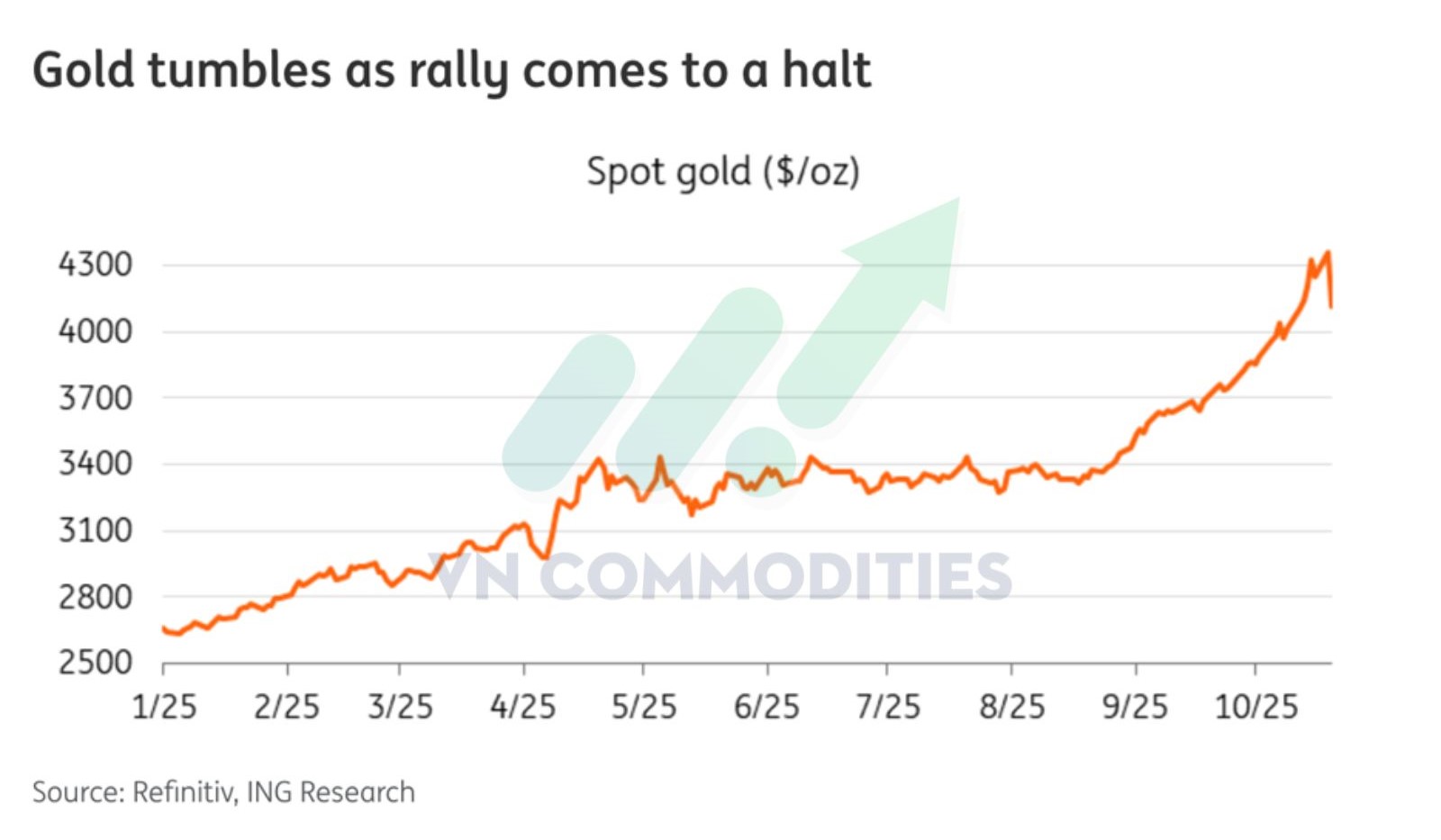 Việc ngân hàng trung ương mua vàng quy mô lớn tạo ra một “điểm tựa” mới cho giá. Tuy nhiên, sau nhiều tuần lập đỉnh liên tiếp, vàng vừa ghi nhận mức giảm mạnh nhất trong 12 năm - phản ánh sự điều chỉnh kỹ thuật cần thiết sau giai đoạn tăng nóng.