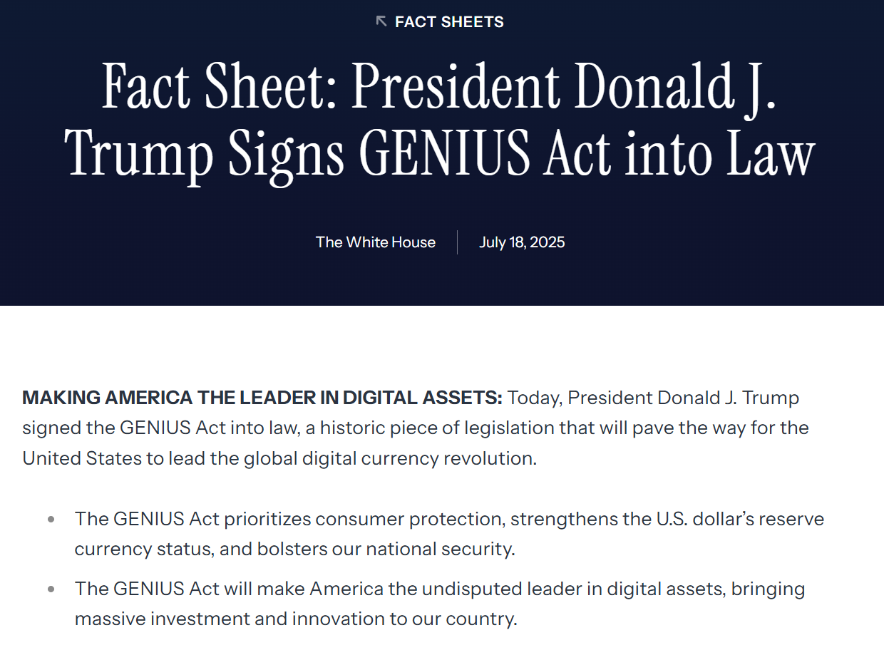 Một đoạn trích từ tờ thông tin về Đạo luật GENIUS (Nguồn: White House)