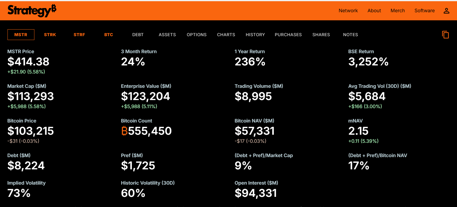 Giá cổ phiếu MSTR của Strategy đã tăng 5,58% trong tuần qua (Nguồn: Strategy)