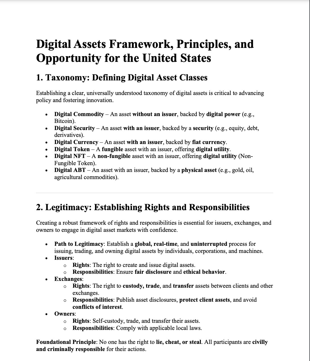 Trang đầu tiên của cấu trúc thị trường tài sản kỹ thuật số được Saylor đề xuất.
