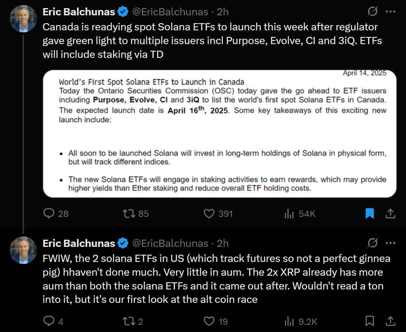 Chuyên gia Eric Balchunas của Bloomberg chia sẻ một ghi chú nội bộ từ ngân hàng TD Bank cho biết OSC đã cho phép cho các công ty quản lý tài sản phát hành ETF Solana.