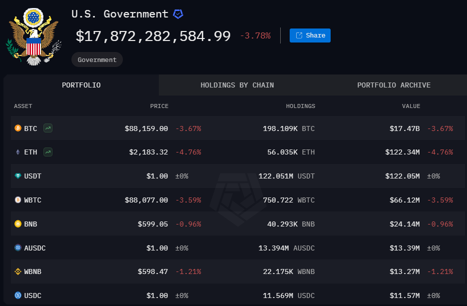 📌 Danh mục crypto của Chính phủ Mỹ