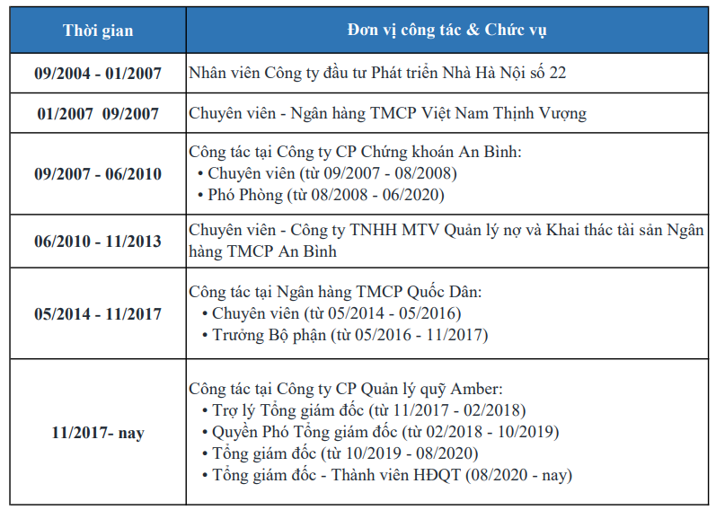 Quá trình công tác của bà Doãn Hồ Lan (Nguồn: Eximbank)