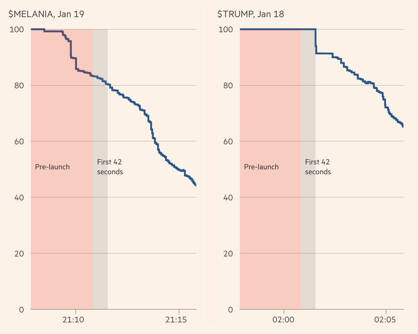 Giá $MELANIA đạt đỉnh trong vòng 10 giờ đầu, sau đó lao dốc (Nguồn: Financial Times)