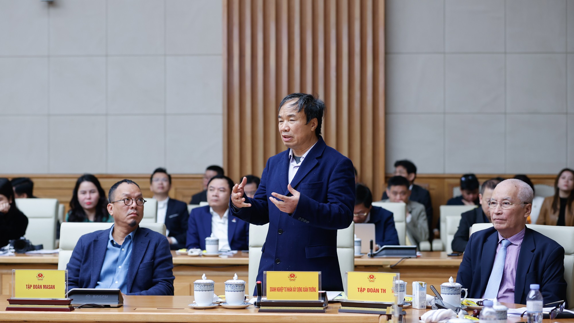 "Muốn làm việc lớn, chúng ta phải có ý tưởng, có mục tiêu và tổ chức thực hiện tốt", ông Nguyễn Xuân Trường, đại diện Tập đoàn Xuân Trường, nhấn mạnh khi đề cập đến vai trò của doanh nghiệp trong phát triển kinh tế tại cuộc họp với Thường trực Chính phủ sáng 10/2.