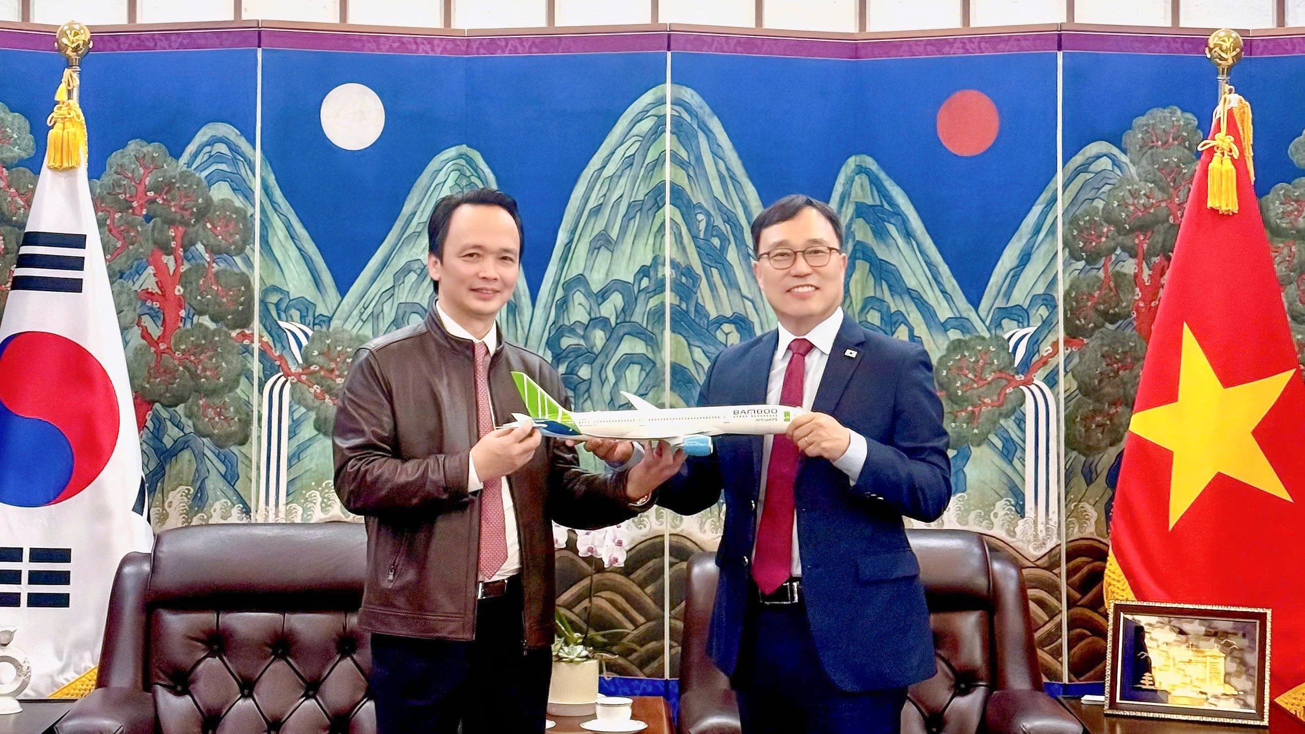 Theo đó, ông Trịnh Văn Quyết gặp Đại sứ Choi Youngsam, đồng thời đại diện FLC tặng mô hình máy bay Bamboo Airways cho phía đối tác. Cuộc gặp được tổ chức tại trụ sở Đại sứ quán Hàn Quốc, nhằm trao đổi định hướng hợp tác và mở rộng kết nối giữa cộng đồng doanh nghiệp hai nước.