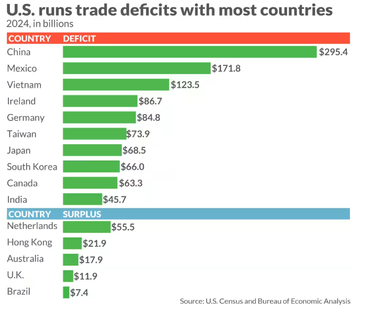 Các đối tác xuất siêu vào Mỹ (Ảnh: Marketwatch)