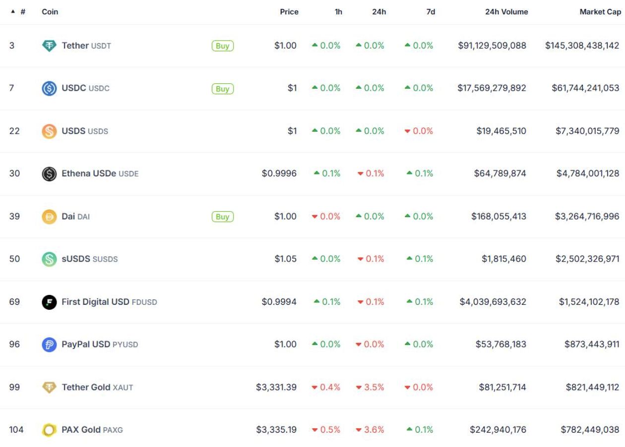 Hiện tại, PYUSD có vốn hóa khoảng 873 triệu USD – còn khá khiêm tốn so với các ông lớn như USDT của Tether (145 tỷ USD) hay USDC của Circle (61 tỷ USD). Trong gần 300 stablecoin đang lưu hành, chỉ 6 đồng vượt mốc 1 tỷ USD - một cuộc đua gắt gao.
