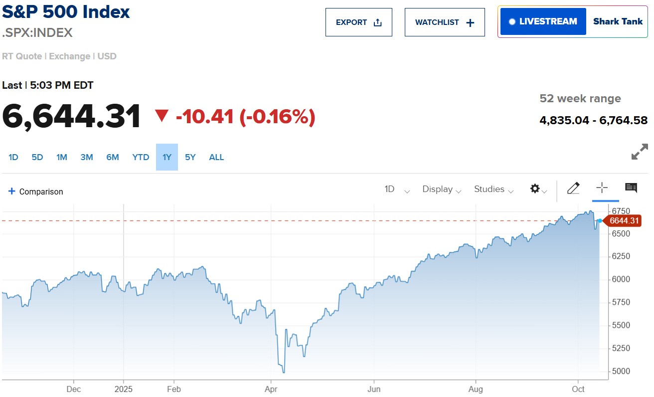 Kết phiên giao dịch ngày 14/10, chỉ số S&P 500 giảm 0,2%, xuống còn 6.644,31 điểm. Chỉ số Nasdaq Composite mất 0,8%, lùi về 22.521,70 điểm, dù có thời điểm giảm sâu tới 2,1%.