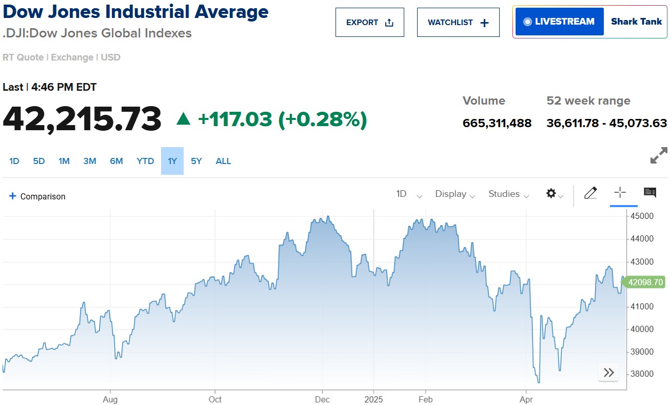 Cụ thể, chỉ số S&P 500 tăng 0,4% lên 5.912,17 điểm, dù trước đó đã có lúc vọt lên 0,9%. Nasdaq Composite nhích 0,39% lên 19.175,87 điểm, thấp hơn đáng kể so với mức đỉnh trong phiên là 1,5%. Dow Jones cộng thêm 117,03 điểm, tương đương 0,28%, chốt phiên ở 42.215,73 điểm.