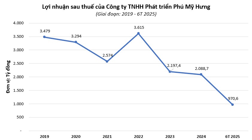 Trong nửa đầu năm 2025, Phú Mỹ Hưng báo lãi sau thuế 970,6 tỷ đồng, giảm 28,9% so với cùng kỳ năm trước.