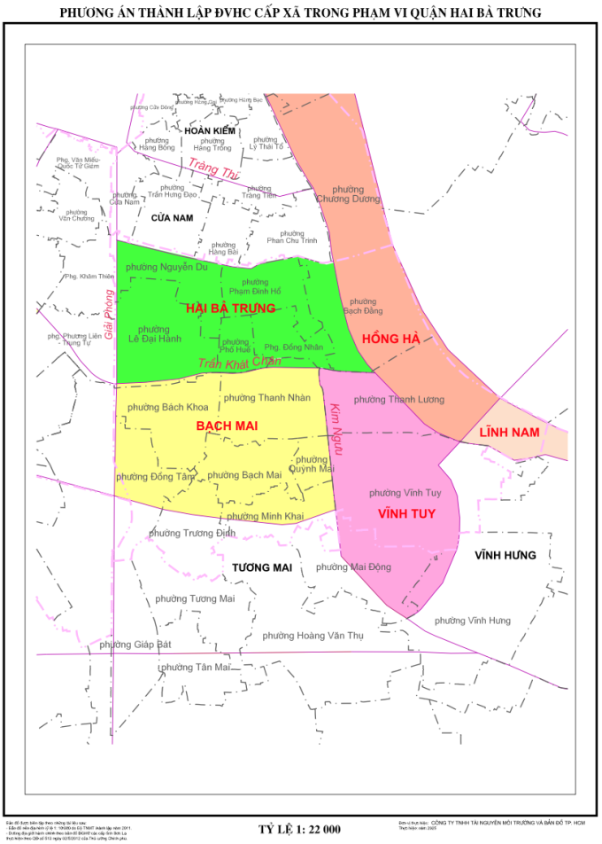 Quận Hai Bà Trưng từ 15 phường còn 3 phường, gồm phường Hai Bà Trưng, Bạch Mai và Vĩnh Tuy.