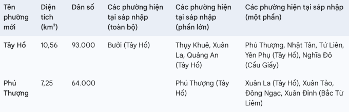 Quận Tây Hồ từ 8 phường còn 2 phường là phường Tây Hồ và phường Phú Thượng.