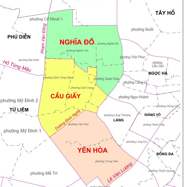 Địa giới các phường của Cầu Giấy sau sáp nhập.