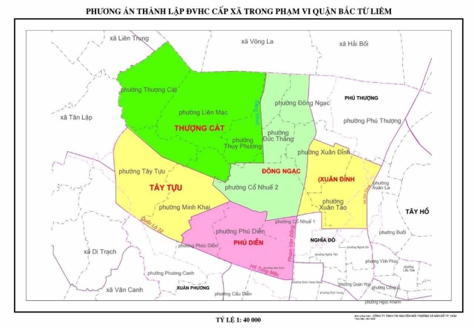 Quận Bắc Từ Liêm từ 13 phường còn 5, gồm Tây Tựu, Phú Diễn, Xuân Đình, Đông Ngạc, Thượng Cát.