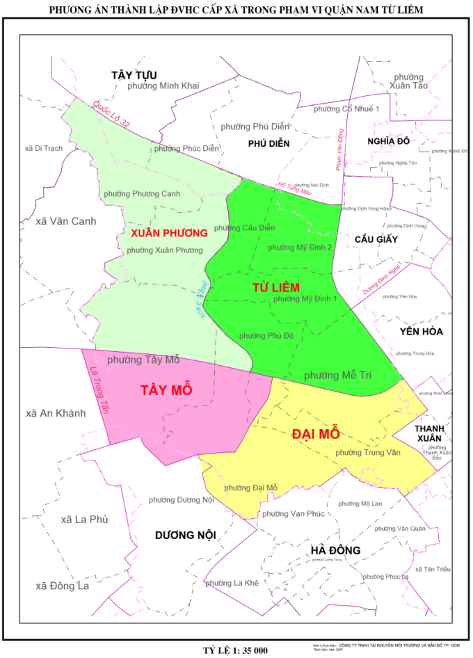 Quận Nam Từ Liêm từ 10 phường thành 4, gồm Từ Liêm, Xuân Phương, Tây Mỗ, Đại Mỗ.