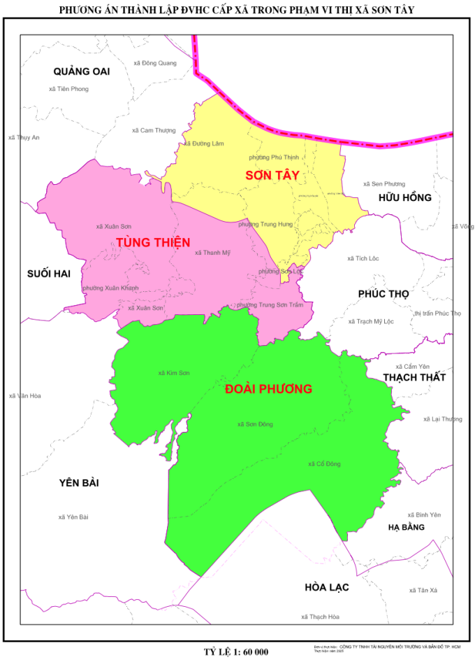Thị xã Sơn Tây từ 13 đơn vị hành chính cấp xã sẽ còn 3, gồm xã Sơn Tây, Tùng Thiện, Đoài Phương.