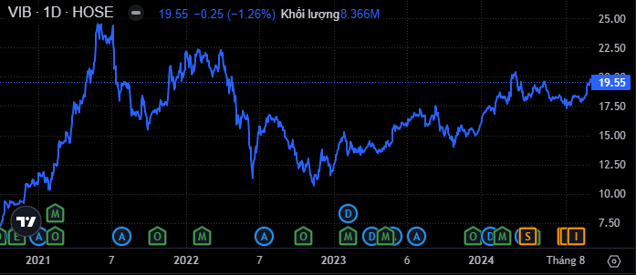 Trên thị trường chứng khoán, kết phiên giao dịch ngày 2/10, cổ phiếu VIB đóng cửa ở mức 19.550 đồng/cp, giảm 1,26% so với tham chiếu.