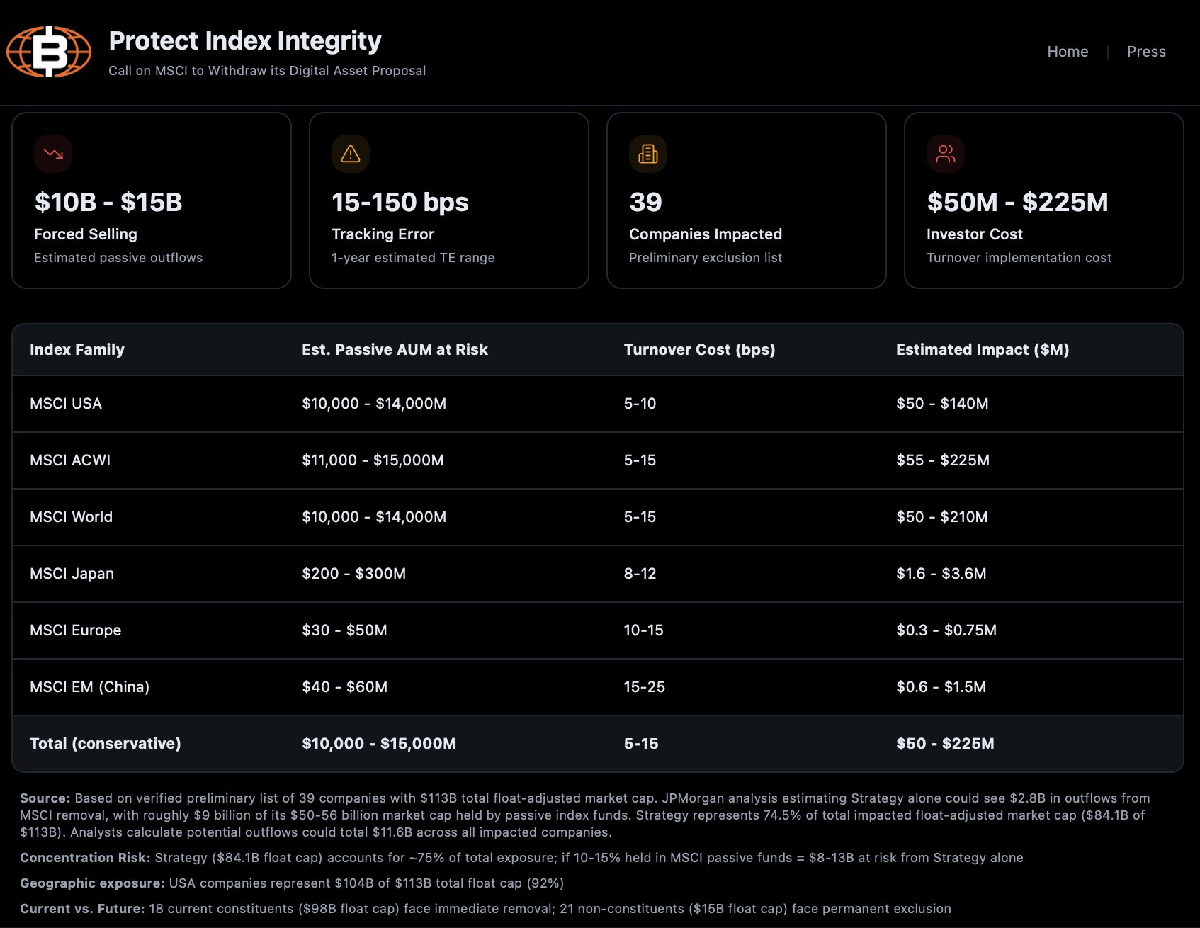 Theo BitcoinForCorporations – một tổ chức vận động phản đối đề xuất của MSCI – dòng vốn rút ra có thể dao động từ 10 đến 15 tỷ USD.