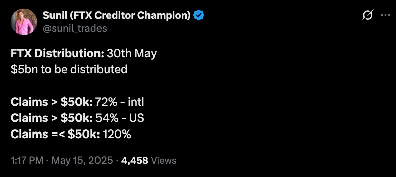 Cập nhật từ Sunil Kavuri - người đại diện cho nhóm chủ nợ của FTX (Nguồn:X)