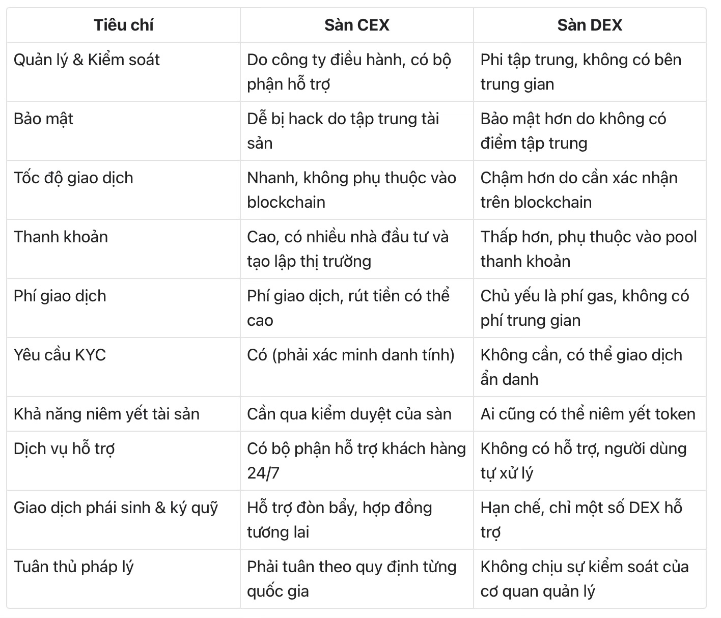 - Nếu bạn là người mới, muốn giao dịch dễ dàng, có hỗ trợ khách hàng và thanh khoản cao → CEX là lựa chọn phù hợp.
