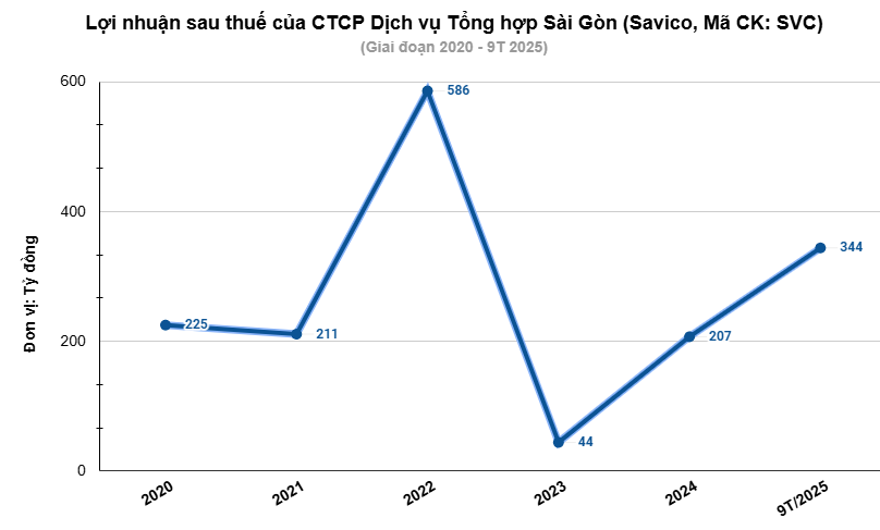CTCP Dịch vụ Tổng hợp Sài Gòn (Savico – Mã CK: SVC) công bố kết quả kinh doanh quý 3/2025 với khoản lãi sau thuế của công ty mẹ đạt 363,9 tỷ đồng, tăng gần 5.800% so với cùng kỳ năm trước.