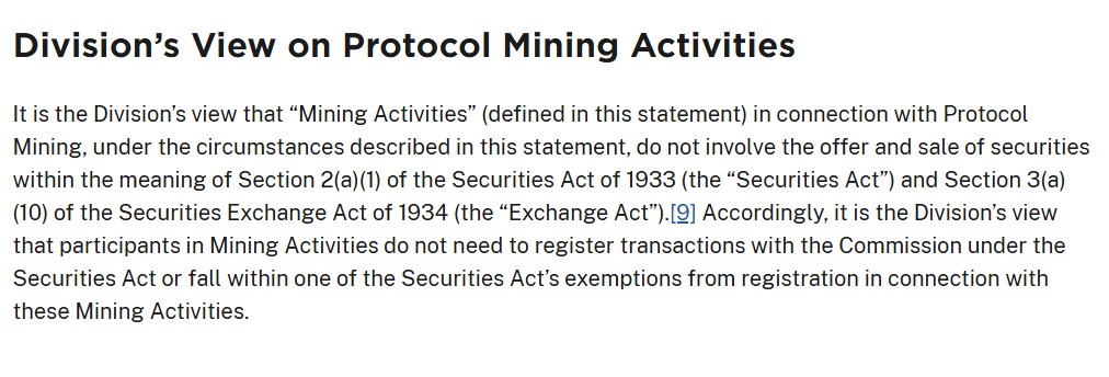 Tuyên bố của SEC về cơ chế proof of work (Nguồn: SEC)