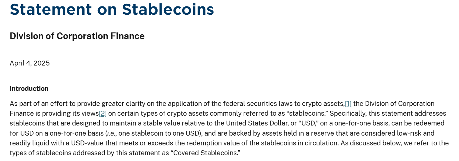 👉 Theo SEC, stablecoin được đảm bảo 1:1 bằng USD, có thể quy đổi ngay và dự trữ bằng tài sản thanh khoản cao - sẽ không cần đăng ký giao dịch hay xin miễn trừ như chứng khoán truyền thống.