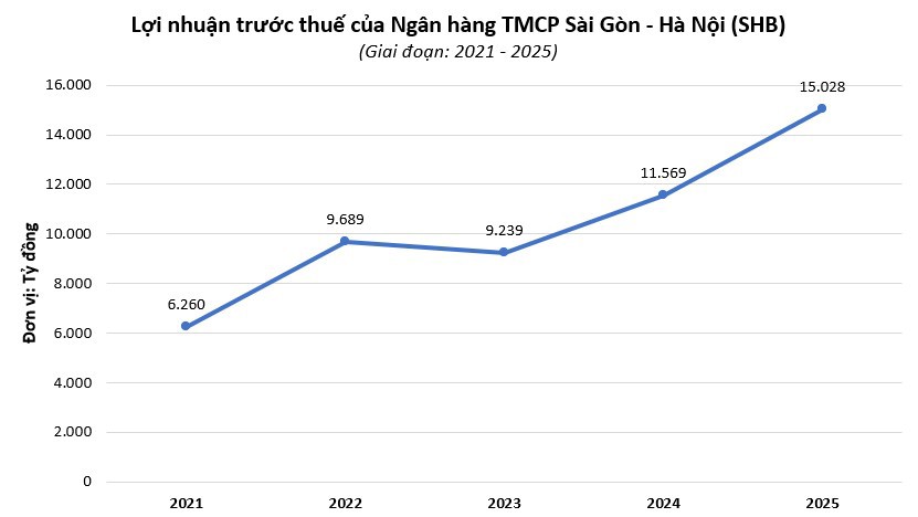 Ngân hàng TMCP Sài Gòn – Hà Nội (SHB) vừa công bố kết quả kinh doanh năm 2025 với lợi nhuận trước thuế đạt 15.028 tỷ đồng, tăng 30% so với năm trước và vượt 4% kế hoạch đại hội cổ đông đề ra.