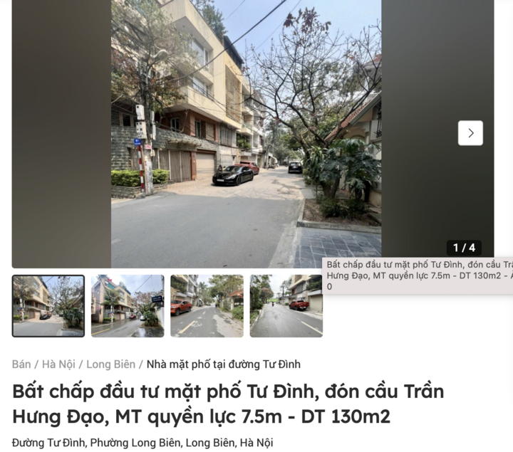 Đáng chú ý, đi kèm các thông tin về căn nhà bán, nhiều môi giới còn gắn kèm quảng cáo về thông tin cây cầu chục nghìn tỷ sắp xây như: "đầu tư đón cầu Trần Hưng Đạo" hay “vị trí tương lai đẹp nhất quận Long Biên vì ngay điểm giao với đường dẫn lên cầu Trần Hưng Đạo”, “nằm ở giữa phố, gần vị trí cầu Trần Hưng Đạo"...