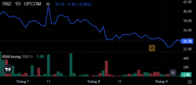Trên thị trường chứng khoán, kết phiên giao dịch 18/9, cổ phiếu SNZ đóng cửa ở mức 33.700 đồng/cp, giảm 0,88% so với tham chiếu./.