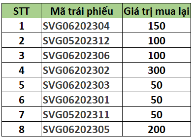 Cụ thể, tập đoàn này đã chi ra 1.000 tỷ đồng để mua lại 8 lô trái phiếu lần lượt có mã SVG06202301, SVG06202302, SVG06202303, SVG06202304, SVG06202305, SVG06202306 SVG06202311 SVG06202312. Các lô trái phiếu này được phát hành vào tháng 5-6/2020, kỳ hạn 5 năm.
